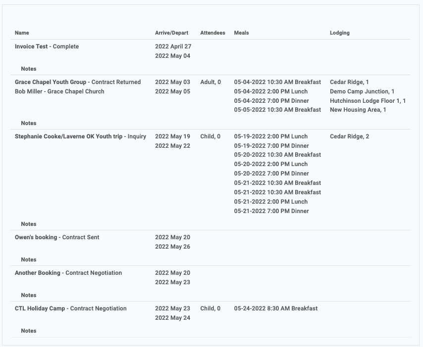 Three types of Bookings reports (which are for a booking or reservation) are available in Gazebo: