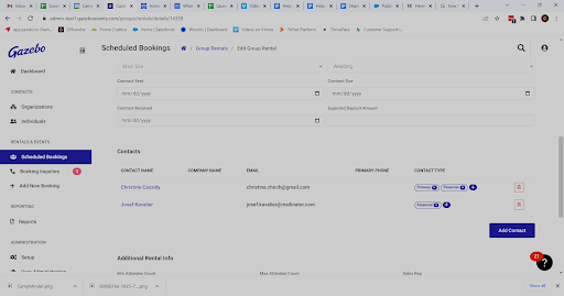- Set contact types within details of the booking to “Financial” and / or “Primary”.