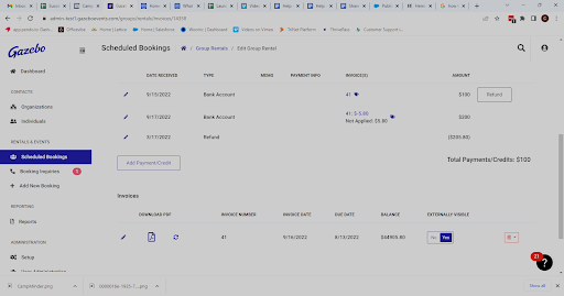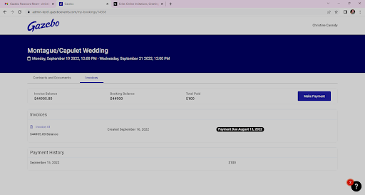 - The Organizer will then receive a notification and be able to log-in, view invoices, and make a payment.