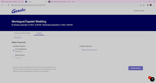 - Now the invoice is available for viewing on the Organizer Portal and a payment can be completed.