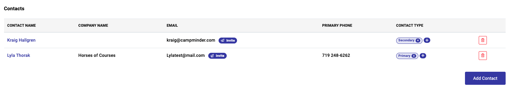 - To create a user and send a password reset email, click the Invite “airplane” Icon (which appears if the contact has an email address, but is not yet a user).