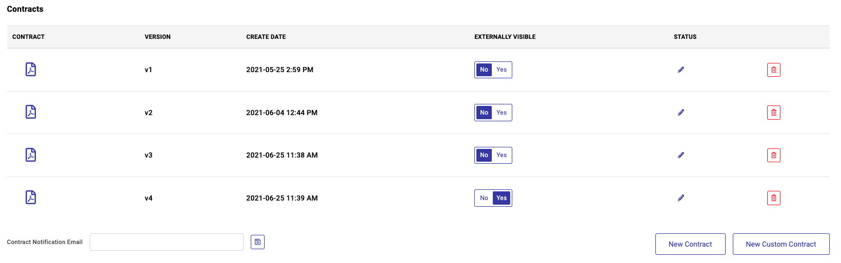 - Select No or Yes on the toggle to indicate whether or not the contract should be visible via the portal.